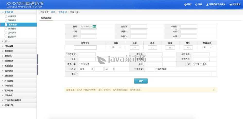 物流管理系统后台模板基于Bootstrap2.3.2制作,蓝色风格,全套模板,包括登录页、查询页面、分理处发货排行榜、开票界面、客户投诉、线路管理等后台模板页面。