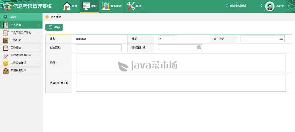 绿色工作信息考核管理模板,绿色风格,包括登录页、项目、查询统计、管理等后台模板页面。